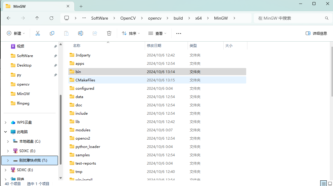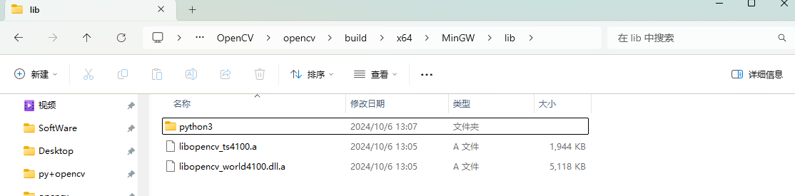 安装完OpenCV后,在 build\x64 路径下新建一个文件夹(可自起,这里是 MinGW )